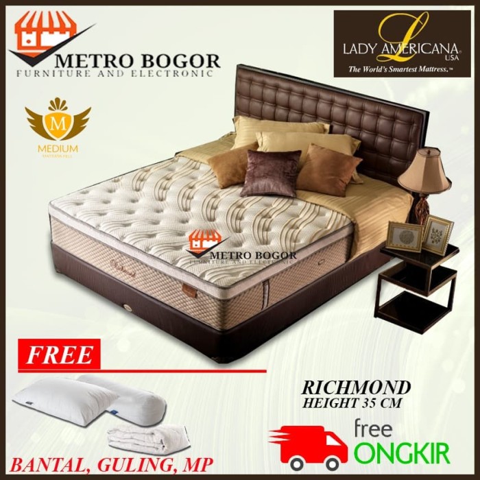Spring Bed Lady Americana Richmond Spring Bed Bagus from springbedbagus.com Untuk diskon tambahan silahkan hubungi kami. Kasur ini akan menghadirkan kesan rapi, mahal, serta berdaya tahan tinggi. Daftar harga lady americana asli termurah di blibli.com free ongkir ⌛ 15 hari retur kualitas terjamin begaransi one day delivery. Springbed impor asal negeri paman sam ini juga paling banyak dicari karena kualitasnya yang termasuk berkelas. Puri lady americana spring bed kasur / mattress divan headboard puri furniture semarang great sale diskon besar2 an spring bed = harga pabrik terima pembayaran dengan credit card visa. Sejak tahun 1982, lady americana sudah dikenal sebagai merk matras dan spring bed berkualitas dan populer di seluruh dunia. Selanjutnya adalah spring bed keluaran lady americana. Jual kasur lady americana spring bed surabaya sidoarjo malang.