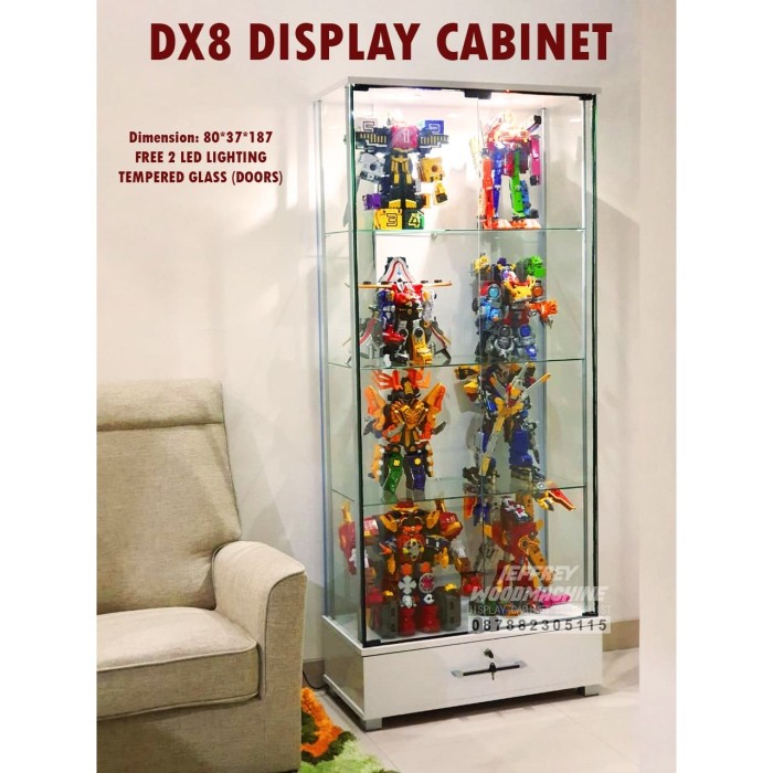 Lemari display rx 2 pintu panjang: leftjual lemari display/left rightrak kaca/right rak pajang mainan /center lemari pajang murah. 90 cm x 45 cm x 200 cm 180cm *kaki lemari bisa diatur tinggi/rendahnya free lampu sorot led (100% hemat energy):matabelo lampu led khusus untuk merawat figurines anda agar. Harga dx1 display lemari pajangan 3 rak kaca gundam metalbuild hot toys ht.